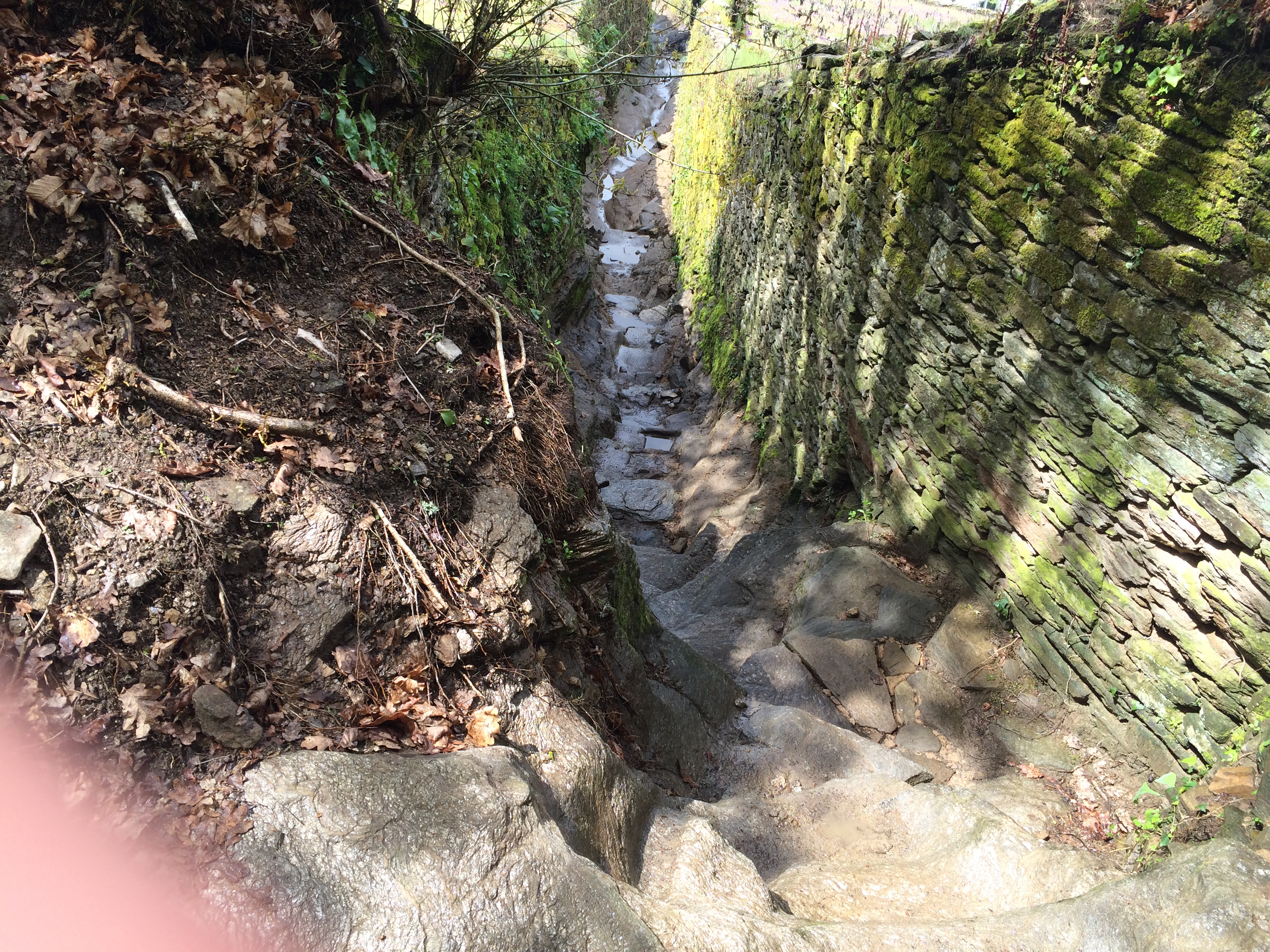 Ein felsiger Weg, den man eigentlich wegen Ausrutsch- und Unfall-Gefahr sperren müsste.