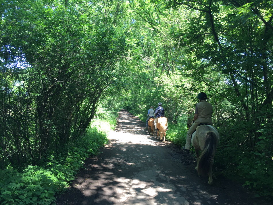 Ladies zu Pferde sah ich heute mehrfach. Diese Gruppe war aber so gemütlich unterwegs, dass ich sie ohne Eile überholte.