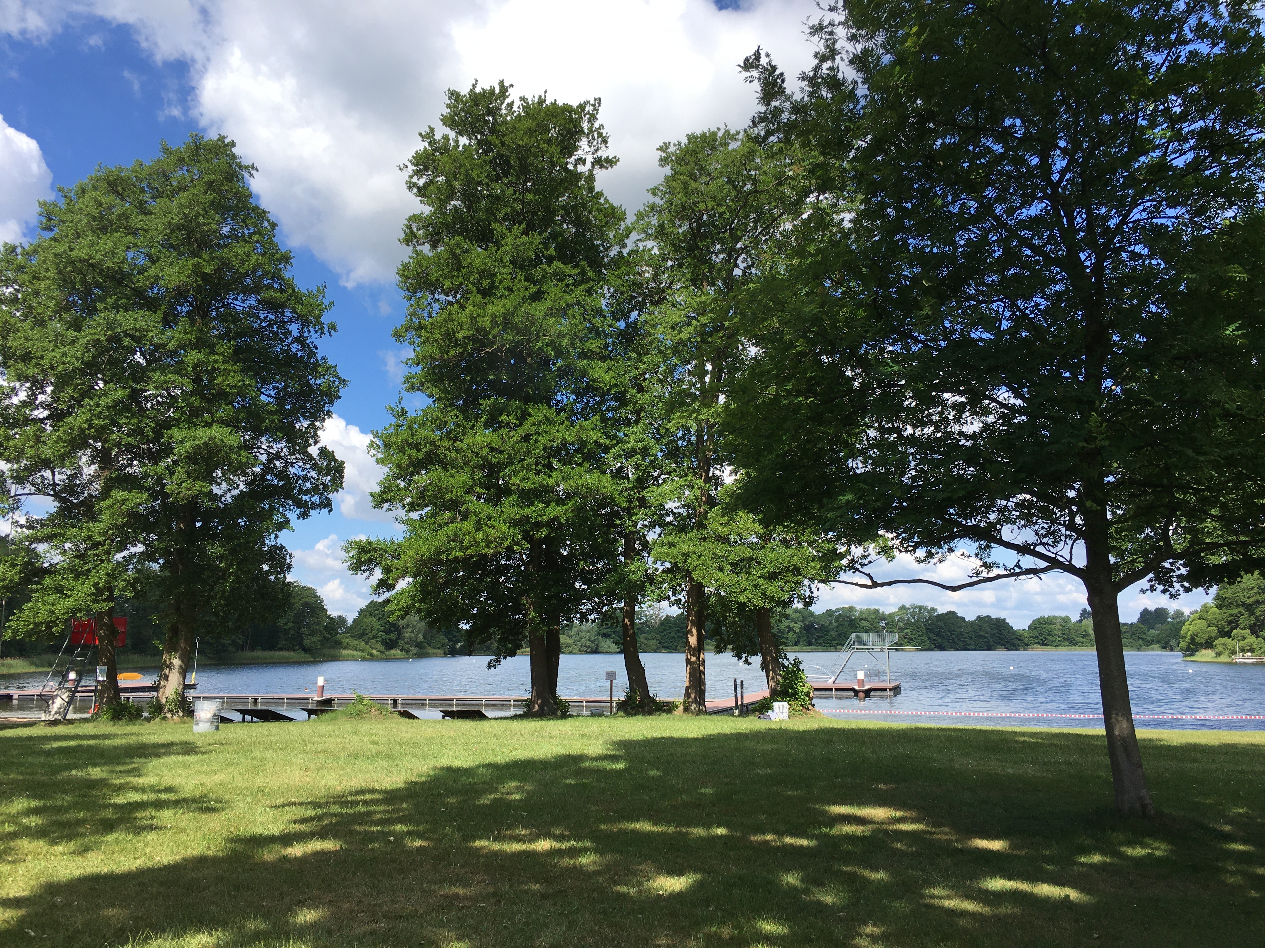 Das Freibad am Itzstädter See. Nur eine regungslose Person habe ich dort herumliegen sehen. Bald sind Sommerferien und dann ist sicher deutlich mehr los.
