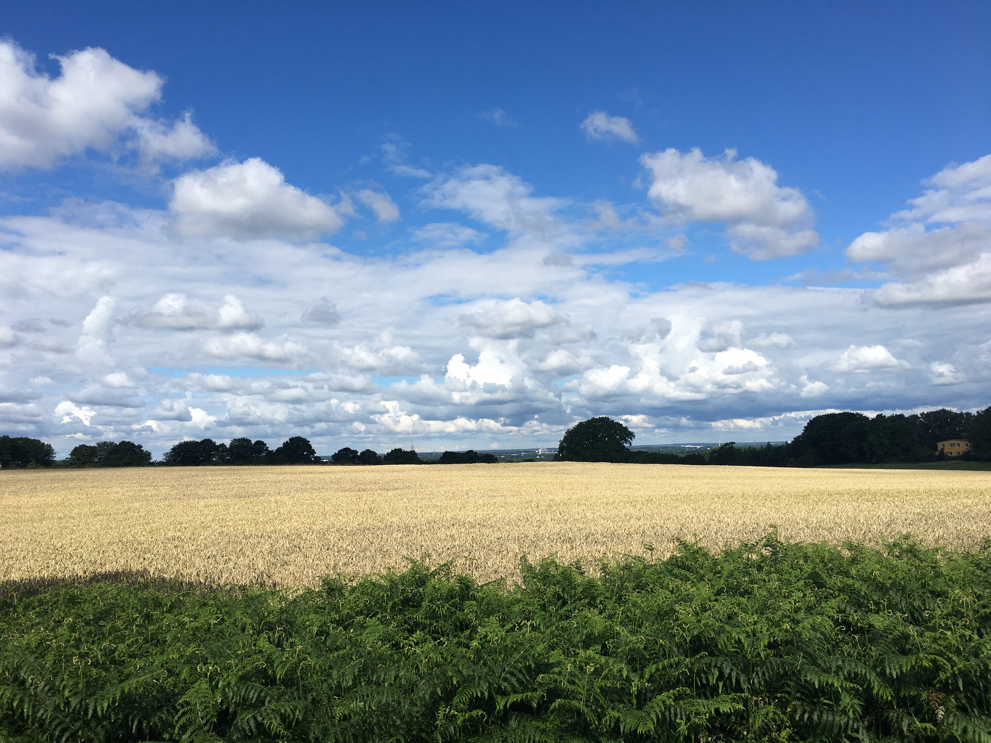 Auf der anfangs erwähnten Anhöhe Rathkrügen kann man hinter dem Feld weit ins Land schauen.