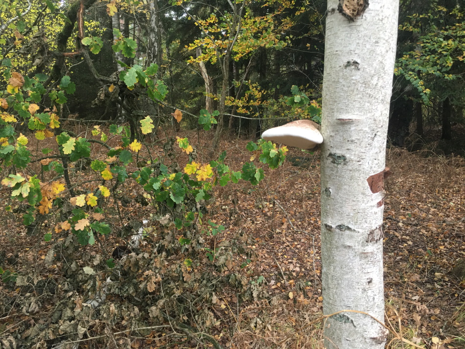 Samtiger Pilz an der Birke. Ob man ihn essen kann?